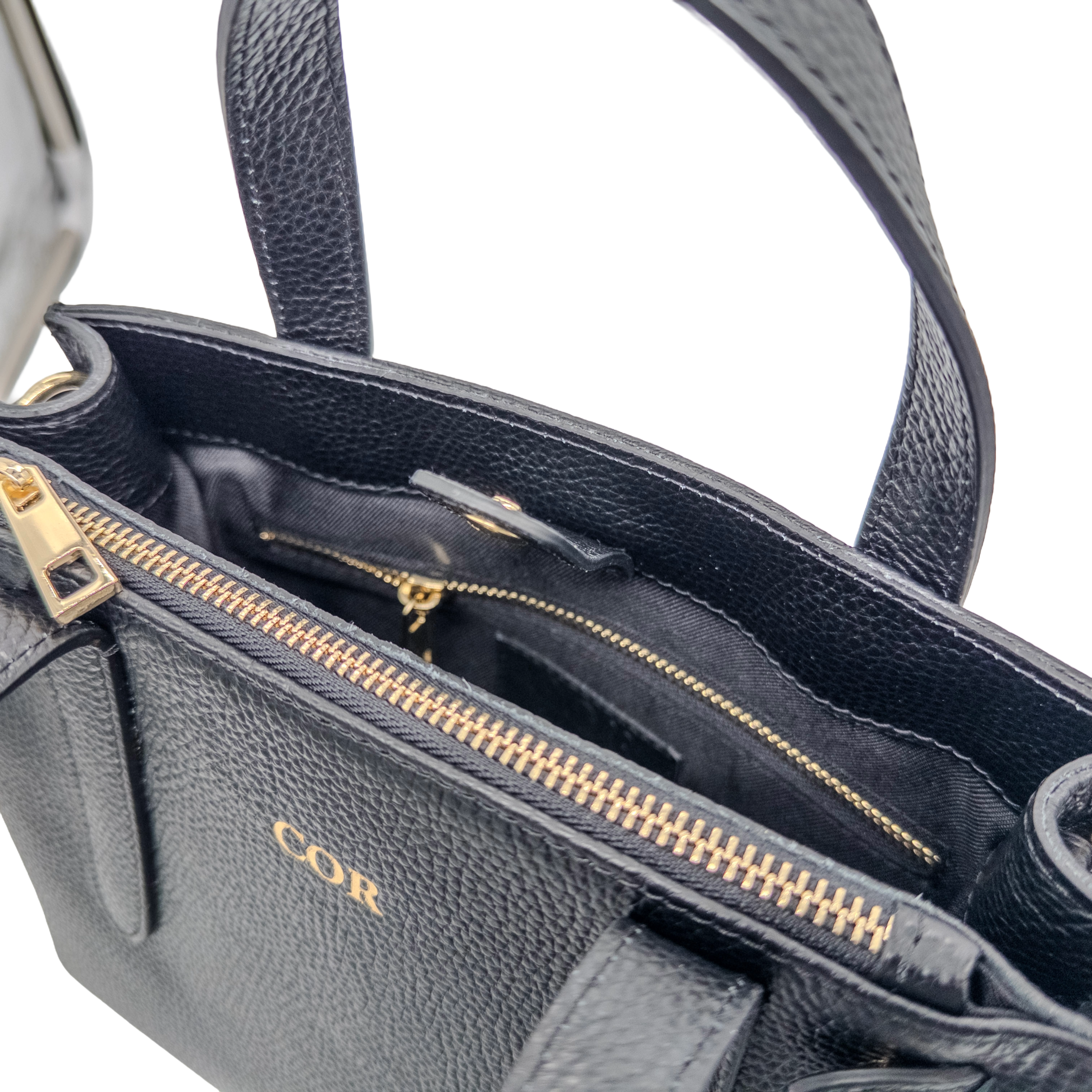 A refined double top-handle silhouette, crafted with timeless precision and modern versatility. The detachable and adjustable 120 cm shoulder strap offers effortless transitions between hand, shoulder, and crossbody wear. A sleek magnetic closure secures the design, complemented by a front zip pocket for easy access and an interior thoughtfully appointed with a zip pocket and dedicated cell phone compartment. A harmonious balance of elegance and utility, crafted for the discerning woman.